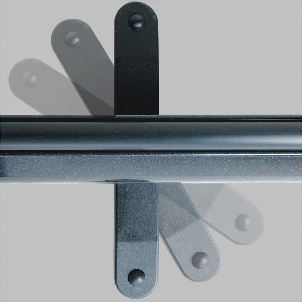 Inovatívny dizajn a bezpečnostné funkcie, ktoré bezpečne uzamknú obrazovku vo vnútri puzdra počas prepravy. Po zdvihnutí opornej tyče sa puzdro automaticky odomkne, čo umožňuje vytiahnutie obrazovky za rukoväť. Po zasunutí obrazovky sa puzdro automaticky uzamkne. Nosná tyč je tiež vybavená jednosmerným patentovaným zámkom, ktorý umožňuje úplné zabezpečenie a jednoduché nastavenie zadnej opory. To vám umožní plynulo upravovať výšku obrazovky. Rukoväť neslúži len na zdvíhanie a vytiahnutie oddeľovacej obrazovky z puzdra, ale aj na jej upevnenie k nosnej tyči, aby sa oddeľovač nezosypal alebo nepohol.