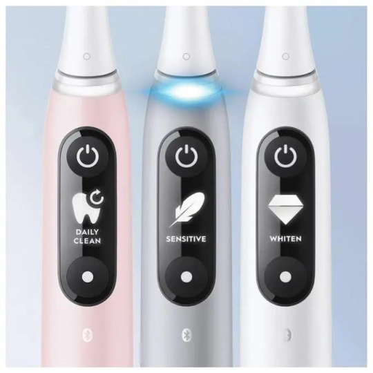 Oral-B iO pomáha chrániť ďasná pred nadmerným tlakom. Inteligentná kontrola tlaku varuje červeným svetlom, ak vyvíjate príliš veľký tlak, a rozsvieti sa zeleno, ak používate optimálny tlak. Interaktívny displej umožňuje jednoduchú orientáciu v rôznych funkciách a nastaveniach kefky. Môžete si vybrať medzi rôznymi režimami čistenia, v reálnom čase získate personalizované pokyny a upozornenia na výmenu hlavice kefky. Vizuálny časovač poskytuje informácie o odporúčanej dobe čistenia 2 minúty. Zubná kefka vás ráno privíta a po vyčistení zubov vám vykúzli úsmev na tvári pre vynikajúce výsledky. Zažite zážitok z čistenia zubov, ktorý vás inšpiruje!
