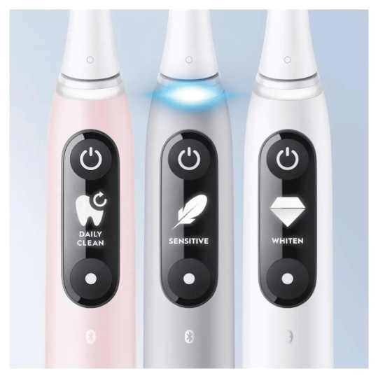 Dodnes najdôkladnejšie a najpohodlnejšie čistenie zubov pod značkou Oral-B! Vyskúšajte pokročilú technológiu a špičkové prevedenie zubnej kefky Oral-B iO6 a už nikdy nebudete chcieť nič iné! Inovatívny systém magnetického pohonu iO prenáša čistiacu energiu jemných mikrovibrácií na konce vláken, ktoré tak ľahko kĺžu po zuboch a robia čistenie účinným a príjemným. Zdokonalený chytrý senzor tlaku chráni ďasná a signalizuje, kedy si zuby čistíte správne. Umelá inteligencia rozpozná váš štýl čistenia a poradí vám, aby ste si vyčistili všetky zuby a nevynechali žiadne miesto.
