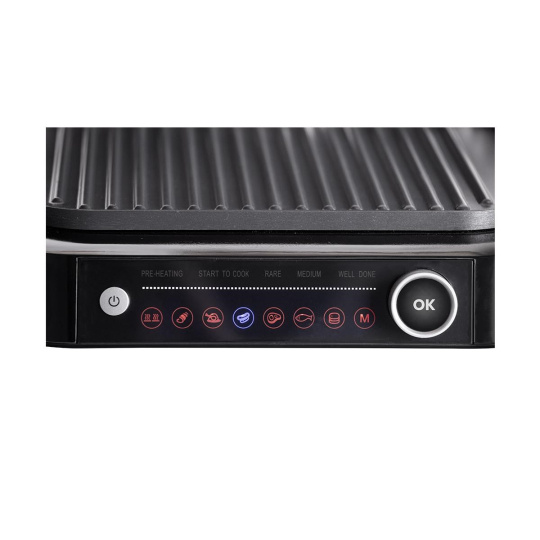Pre ešte pohodlnejšiu prípravu grilovaných jedál má Grillchef-2 ovládaciu obrazovku s LED displejom, na ktorej si jednoducho navolíte požadovaný režim grilovania. Na výber máte zo 6 programov vrátane funkcie Defrost a manuálneho režimu (M).