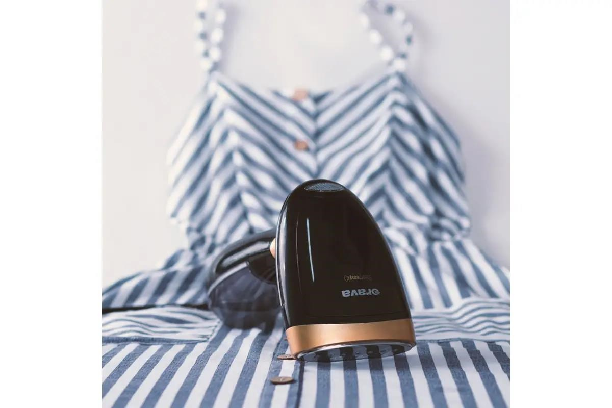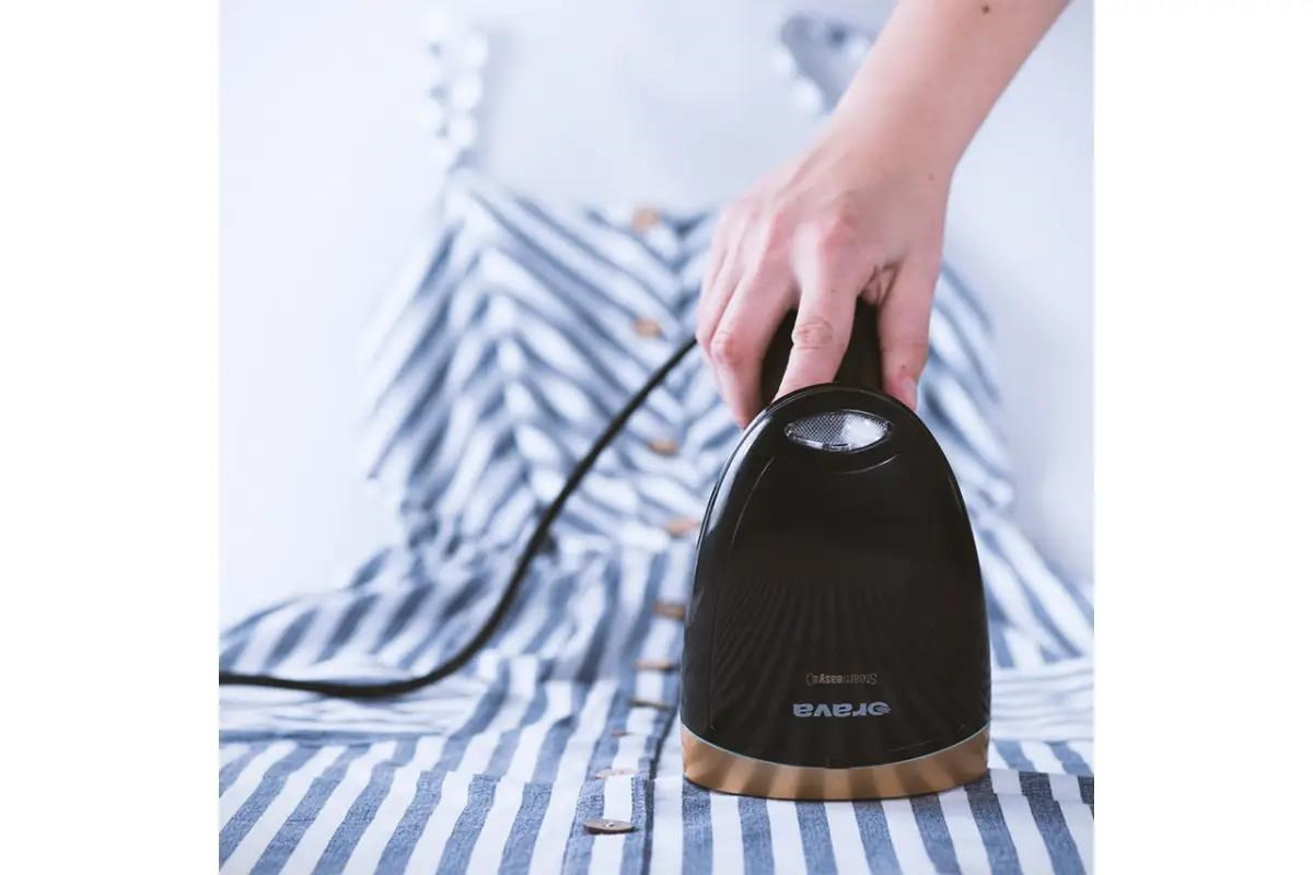 Je ľahký a kompaktný. Váži len 670 g a vďaka ergonomickému tvaru výborne sedí v ruke. Má sklápaciu rukoväť, takže sa dá ľahko sklopiť a prenášať - aby ste ho mali aj na cestách pripravený na expresné odstraňovanie záhybov na letných šatách či vyčistenie detského trička od zmrzliny.