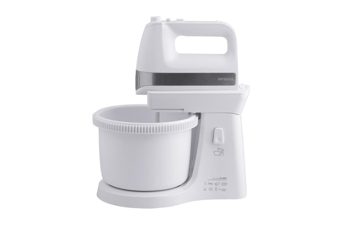 Orava SL-400 C ruční šlehač s nádobou, 400 W, 85 dB, 5 rychlostí, 2.5 l objem mísy, pulzní spínač, bílá