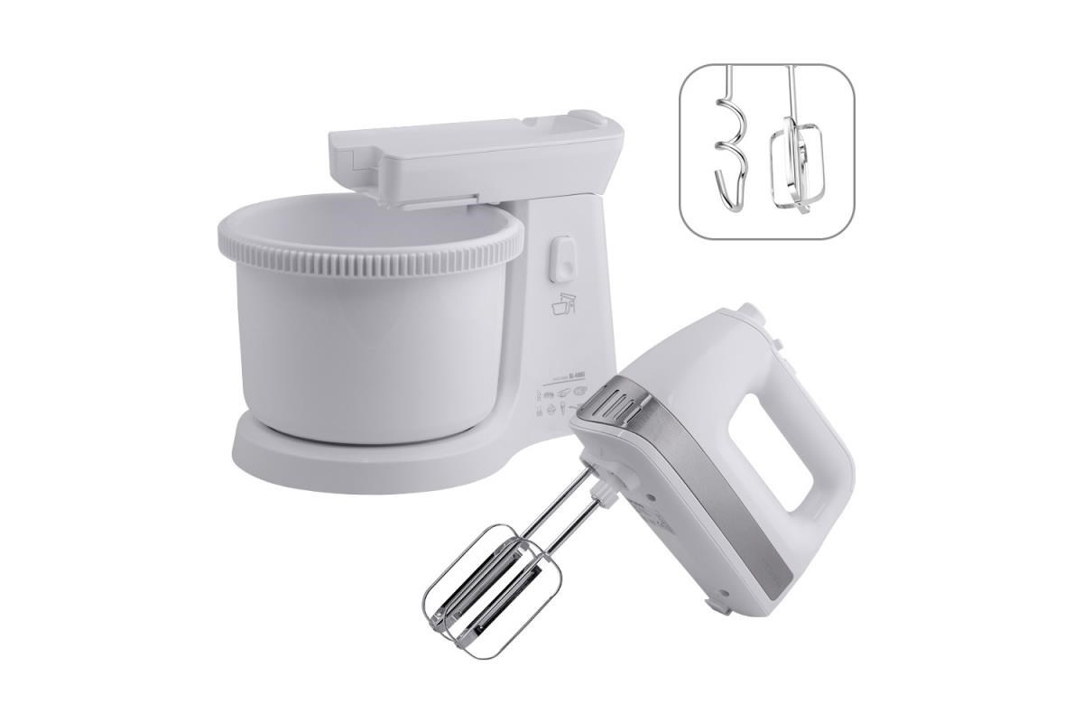 .Orava SL-400 C ruční šlehač s nádobou, 400 W, 85 dB, 5 rychlostí, 2.5 l objem mísy, pulzní spínač, bílá