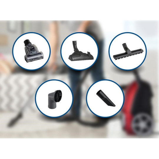 .Orava Volcano vysavač, 600 W, sáčkový, objem 4 l, ECO motor, 68 dB, akční rádius 9 / 6 m, červená
