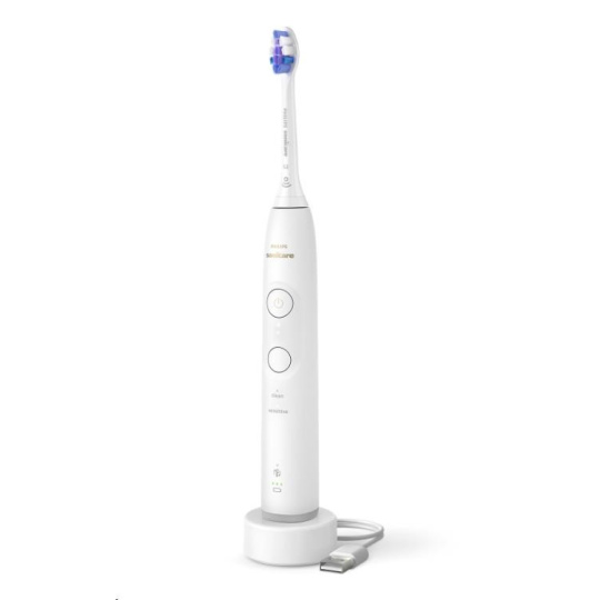 Tento elektrický zubná kefka využíva našu technológiu Sonicare novej generácie, ktorá zabezpečuje naše najspoľahlivejšie a najkonzistentnejšie čistenie, aby ste zakaždým dosiahli skvelé výsledky. Motor automaticky upravuje výkon, takže keď sa dostanete na ťažko dostupné miesta, nedôjde k žiadnemu poklesu. Užite si jemné, ale výkonné čistenie zubov a ďasien s 62 000 pohybmi štetín za minútu. Dynamická vlna Sonicare podporuje účinnosť štetín tým, že vháňa tekutinu hlboko do medzizubných priestorov a podél línie ďasien.