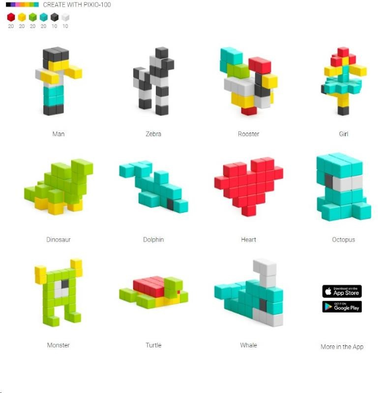 DIZAJNOVÁ SÉRIA PIXIO-100 OBSAHUJE 100 BLOKOV PIXIO V ŠIESTICH DOKONALE ZLADENÝCH FARBÁCH, KTORÉ
