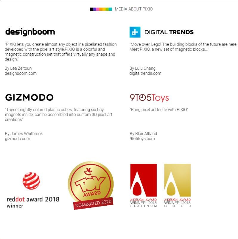 PIXIO získalo niekoľko prestížnych ocenení ako Red Dot Award, TOY AWARD a ´DESIGN
