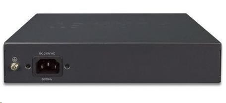 eEE ethernet IEEE 802.3az. Automatická detekcia 10/100 Mb/s a kríženia káblov. Bez ventilátorov, interné napájanie AC 230V.