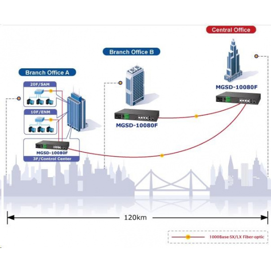 Spravovaný viacportový optický prepínač SFP navrhnutý pre rozsiahle siete, telekomunikácie a aplikácie ISP alebo IPTV. Vďaka svojej fyzickej a odolnej konštrukcii je vhodný na priamu inštaláciu do smerových alebo koncových skríň. Zariadenie pracuje v teplotnom rozsahu od -10 do 60 °C, môže byť napájané redundantne, má digitálne I/O rozhranie a všetky porty sú prístupné z predného panela. Prepínač možno spravovať prostredníctvom protokolov IPv4 a IPv6, SNMPv3 a bezpečne na šifrovanej vrstve SSL/SSH. Medzi funkcie patrí integrácia do dátových centier alebo pripojenie a zabezpečenie prevádzky koncových používateľov, riadenie prevádzky na základe QoS, filtrovanie a autorizácia prístupov prostredníctvom zoznamu ACL (Access Control List), aktivácia fyzického portu na základe autentifikácie na serveri RADIUS pomocou IEEE 802.1x. Vlastnosti 8x 100/1000Base-SX/LX/BX/FX SFP rozhraní, podpora SFP-DDM (Digital Diagnostic Monitor) 2x 1000Base-T, Switching, Full Duplex (1000/2000 Mbps), Auto-Negotiation (10/100/1000 Mbps), sdílených s SFP porty Plná podpora protokolu IPv6/IPv4 8k MAC adres, sdílený buffer 4Mbit Propustnost: sběrnice 20Gbps, 14,8Mp/s(64B) Podpora přenosu Jumboframe 9KB Provedení rackmount, rozměry (330 x 155 x 43,5)mm, hmotnost 1,6kg, 1U výška Napájení: duálně AC 100~240V/50Hz; DC -36V až -72V; příkon do 11W 2x digitální vstupy (zátěž 10mA)+2x výstupy(zátěž 100mA), úrovně 0-24V Provozní teplota: -10 až 60°C  Administrace Web/Telnet/konzole/SNMP s možností zabezpečeného přístupu SSH/SSL SNMP v1,v2c,v3  Funkce administrace nastavení režimu fyzické práce portů 255 sítí VLAN 802.1Q, trunking, možnosť nastaviť vstupný filter VLAN tagged/untagged paketov IP ACL, filtrovanie prevádzky podľa IP adresy, protokolu, portu, TCP príznakov, DSCP MAC ACL, filtrovanie prevádzky podľa MAC adresy, podľa VLAN ID a kombinácie príznakov priority Port shaper - nastavenie v rozsahu 500kb/s-1Gb/s QoS prioritizácia prevádzky podľa 802.1p a podľa ToS/DSCP v IP pakete, možnosť nastaviť obmedzenie odosielaných paketov na port a podľa pravidiel QoS Podpora IP multicast, IGMP, možnosť ovládať multicast priamo prepínačom (zapnúť/vypnúť multicast), IGMP v1/v2/v3; režim IGMP Query Zrkadlenie portov Port trunking IEEE 802.3ad LAPC: 5 skupín, max. 8 portov Spanning Tree IEEE 802.1d, Rapid Spanning Tree IEEE 802.1w, viacnásobný rozprestierajúci sa strom IEEE 802.1s IEEE 802.1x RADIUS - viazanie IP+MAC, VLAN + MAC DHCP Snooping na blokovanie nevhodných DHCP serverov LLDP IEEE 802.1ab - automatická detekcia typu pripojených zariadení..