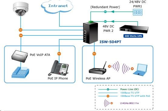 Prepínač planét ISW-514PTF, priemysel.verzia 4x10/100+1x100BaseFX (SFP), DIN, IP30, -40 až 70°C, 12-48V Priemyselné ethernetové prepínače sú určené do náročných prevádzkových podmienok so širokým rozsahom prevádzkových teplôt, neistým napájaním a častými otrasmi. Prepínače radu ISW sa ľahko inštalujú na štandardnú lištu DIN alebo priamo na stenu a umožňujú nasadenie známej technológie Ethernet aj v priemyselnom prostredí. Sú vhodné aj na inštaláciu vo vonkajších krytoch s veľkými výkyvmi prevádzkových teplôt (typicky bezdrôtové aplikácie a aplikácie MAN ISP alebo kamerové systémy). Verzia s POE IEEE 802.3af umožňuje priamo napájať až 4 koncové zariadenia, takže je ideálny pre aplikácie so zníženým výkonom koncových zariadení! Vlastnosti: 4 porty 10/100 Base-TX, prepínanie, plný duplex (100/200 Mb/s), automatické vyjednávanie (10/100 Mb/s) na všetkých PoE IEEE 802.3af injektory se zatížitelností 15,4W/port, celkově až 60W 1x 100FX, SFP slot pro instalaci modulů MFB-TFX nebo MFB-TF20 2k MAC adres automatická detekce přímý/křížený kabel na každém portu pole LED indikátorů pro diagnostiku provozu instalace na DIN lištu, montážní díl součástí instalace na zeď, montážní díl součástí krytí IP30, skříň celohliníková napájení: 24/48V DC redundantní, připojení možné ze dvou různých zdrojů (nejsou součástí balení) ochrana proti přepólování, připojení napájení na svorkovnici, umístění na spodním panelu (nepřekáží při montáži na zeď) alarmový výstup aktivovaný při výpadku napájení zařízení je odolné proti pádu (IEC-60068-2-32) z výšky 75cm na všechny dopadové části zařízení je odolné proti vibracím (IEC-60068-2-6) 10-500-10Hz, 4x g, 0,5oct/min zařízení je odolné proti přetížení krátkodobému zrychlení 50x g, dlouhodobému 4x g (IEC-60068-2-27) EMI/EMS, elektromagnetická komp C, vlhkosť do 90 % hmotnosť: 842 g rozmery: 135 x 87.8 x 56 mm..