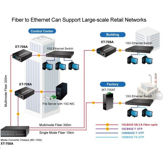 Planet XT-705A, konvertor 10G/5G/2.5G/1G/100M / miniGBIC SFP+ 10GBASE-X
