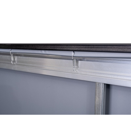 Rám plátna je potiahnutý čiernym semišom na pohlcovanie okolitého svetla a zvýraznenie projekčných farieb.