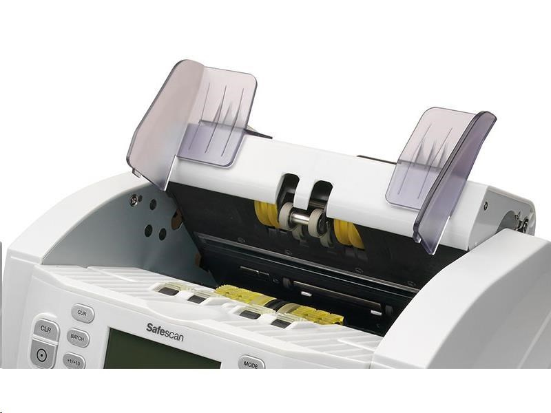 - Počítačka Safescan 2985-SX je skvelým pomocníkom pri efektívnom a rýchlom počítaní, triedení a overovaní bankoviek. - Vďaka konštrukcii s dvoma výstupnými priehradkami a technológii CIS dokáže počítačka počítať aj hodnoty najmodernejších typov bankoviek, ako sú bankovky vytlačené na polyméroch, s priehľadnými okienkami alebo s takmer rovnakými nominálnymi hodnotami. - Počítačka je určená na veľké množstvá bankoviek a je ideálna pre veľké podniky, ktoré potrebujú rýchle a bezchybné počítanie viacerých mien s detekciou pravosti. - Šetrí čas a eliminuje chyby pri počítaní. - Veľký zásobník pojme až 300 bankoviek a počíta s tromi rôznymi rýchlosťami, čím poskytuje maximálnu flexibilitu. - Počíta triedené bankovky akejkoľvek meny a netriedené bankovky CZK, EUR, GBP, CHF, USD, PLN, BGN. - 8-bodová detekcia falzifikátov - UV, magnetické a infračervené prvky, kovový povlak, vodoznak, farba, veľkosť a hrúbka. - 4 štandardné meny na detekciu a počítanie: GBP, EUR, USD a CHF. - Počas procesu počítania zostávajú podozrivé bankovky v susednej výstupnej priehradke, zatiaľ čo počítanie pokračuje. - Automatické rozpoznávanie meny a nominálnej hodnoty. - Triedi a otáča bankovky v dvoch výstupných priehradkách pomocou modernej technológie CIS. - Dokáže skenovať sériové čísla bankoviek. - Vhodné pre polymérové bankovky a nové bankovky série Európa...