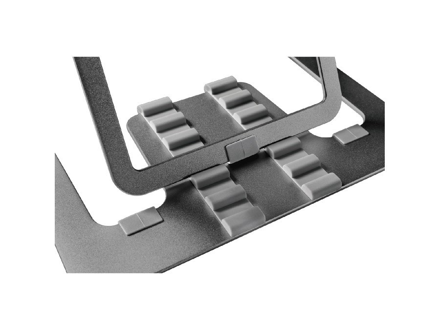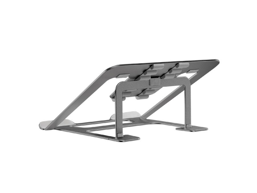 Podstava na notebook laptop Fiber Mounts M4C16G Prenosná hliníková podstava / stojan na notebook alebo laptop 11-15", polohovateľný, nosnosť 5kg, farba šedá (do striebra) Kvalitná hliníková podstaľa / stojan na ergonomické podloženie notebooku alebo laptopu s uhlopriečkou 11-15" (bežné veľkosti) a 6-stupňové polohovanie 78mm až 124mm pre nastavenie najvhodnejšieho uhla sklonu pre správne držanie tela pri práci alebo hraní na notebooku alebo laptopu. Podstavec je opatrený protisklzovými silikónovými podložkami, ktoré zariadenie výborne stabilizujú a nebránia cirkulácii vzduchu pre spoľahlivé chladenie. Hliníkový ergonomický podstavec na notebook Fiber Mounts M4C16G Technické údaje: - nosnosť 5kg - na notebooky a laptopy s uhlopriečkou 11-15" - 6 stupňov nastavenia výšky 78-124mm - protisklzové silikónové podložky pre spoľahlivé zafixovanie polohy - výrazné zlepšenie ergonómie pre pohodlnú prácu alebo hranie - neobmedzuje dostatočné chladenie prístroja - možnosť zloženia pre jednoduché prenášanie alebo na cesty (235x223x13mm) - materiál hliník - farebné prevedenie šedé - záruka 5 rokov Kvalitná hliníková podstava stojanček na notebook pre výrazné zlepšenie ergonómie a pohodlia pri práci alebo hraní hier Fiber Mounts M4C16G Podstava je vhodná pre všetky bežné veľkosti notebookov a laptopov od všetkých výrobcov. Odporúčaná je veľkosť notebooku 11-15", ale fungovala rovnako spoľahlivo aj pri použití na notebooku s veľkosťou 17,1". Odporúčame nielen na pracovné účely, ale aj pri použití notebooku deťmi pri hraní hier - výrazná úľava pre vaše chrbty, pretože značne obmedzuje hrbenie.