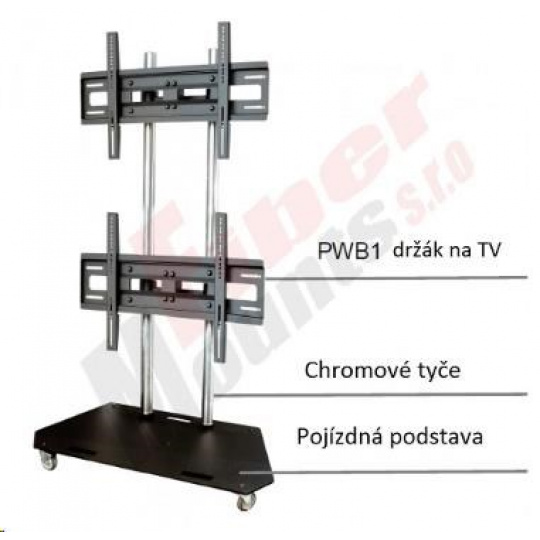 Technické údaje: •maximálne zaťaženie stojanu: 140kg •maximálna hmotnosť 1 televízora: 60kg •výška stojanu 210cm •nastaviteľná výška TV •na TV a monitory 22" - 60" podľa zvoleného držiaku TV •pojazdný, možnosť zabezpečenia proti pojazdu •farba: podstavec čierny, tyče chróm •profesionálny výrobok - najvyššia kvalita •možnosť nastavenia sklonu oboch TV +/-18 st. •vedenie káblovej kabeláže vo vnútri stojanu •nosnosť podstavca 30kg - možnosť umiestnenia PC, notebooku, DVD atď. •rozmery podstavca: 1170x500mm (ŠxH) •atest TUV •záruka 10 rokov