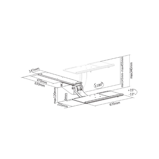 Polička na klávesnicu Fiber Mounts M7C95 Plne nastaviteľná doplnková polička na klávesnicu, rozmery 670x255mm Profesionálna plne nastaviteľná stolová doplnková polička na klávesnicu a myš, ktorá poskytuje skutočné ergonomické riešenie pre Vašu najpohodlnejšiu prácu. Nastavenie vo všetkých polohách s aretáciou. Ak požadujete to najlepšie a záleží Vám na zdravom pracovnom štýle, túto poličku si zamilujete. Profesionálna stolová polička na klávesnicu, plne nastaviteľná: vysúvacia, otočná, sklopná, výškové nastavenie 34cm, aretácia polohy - Fiber Mounts M7C95 Technické údaje: nosnosť 2kg výsuvná 470mm výškové polohovanie 340mm otáčanie +/- 180° rozsah naklápania +15 / -13° rozmery police 670 x 255 snadné schovanie poličky s klávesnicou pod stolovou doskou aretácia polohy najvyššia kvalita snadná inštalácia a ovládanie zvýšenie komfortu a pracovného výkonu farebné prevedenie čierne záruka 3 roky Precízne veľmi jednoduché nastavovanie poličky na klávesnicu Fiber Mounts M7C95 Ušetrite na svojom stole veľa miesta - dajte klávesnicu a myš na túto výsuvnú poličku a kedykoľvek ju môžete uschovať pod stolovou doskou. Polička je plne nastaviteľná a pri práci poskytuje vysoký komfort.