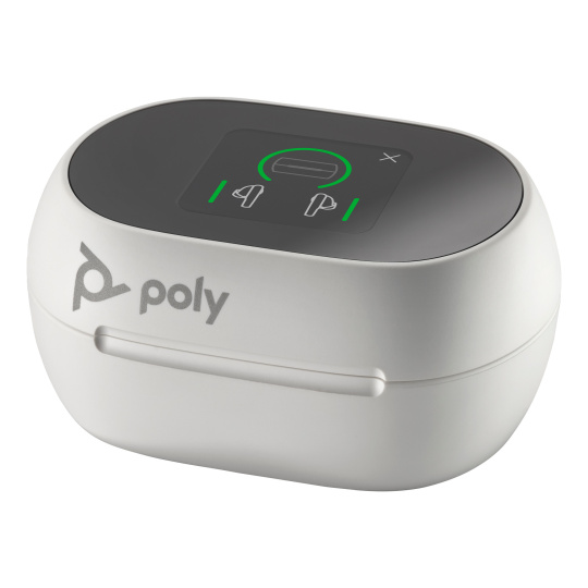 Biele nabíjacie puzdro s dotykovou obrazovkou Poly Voyager Free 60+ UC pre adaptér BT700 USB-A