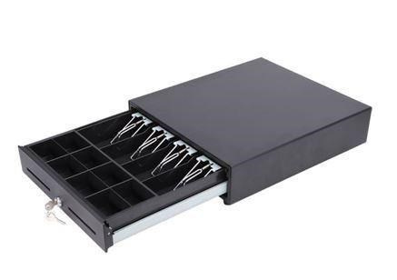 - Kovová pokladní zásuvka s kuličkovým ložiskem pro velké zatížení - Ocelová konstrukce - Včetně přihrádky na bankovky: Nastavitelné přepážky až pro 4 přihrádky (se 4 kovovými sponami) - Včetně přihrádky na mince: Dvouřadá s nastavitelnými přepážkami pro 8 přihrádek - Otvor pro média s předním přístupem pro šek, potvrzení o kreditní kartě nebo jakýkoli papír - 3-polohový zámek kláves - 6V, 12V, 24V pro rozhraní tiskárny účtenek RJ11 / RJ12