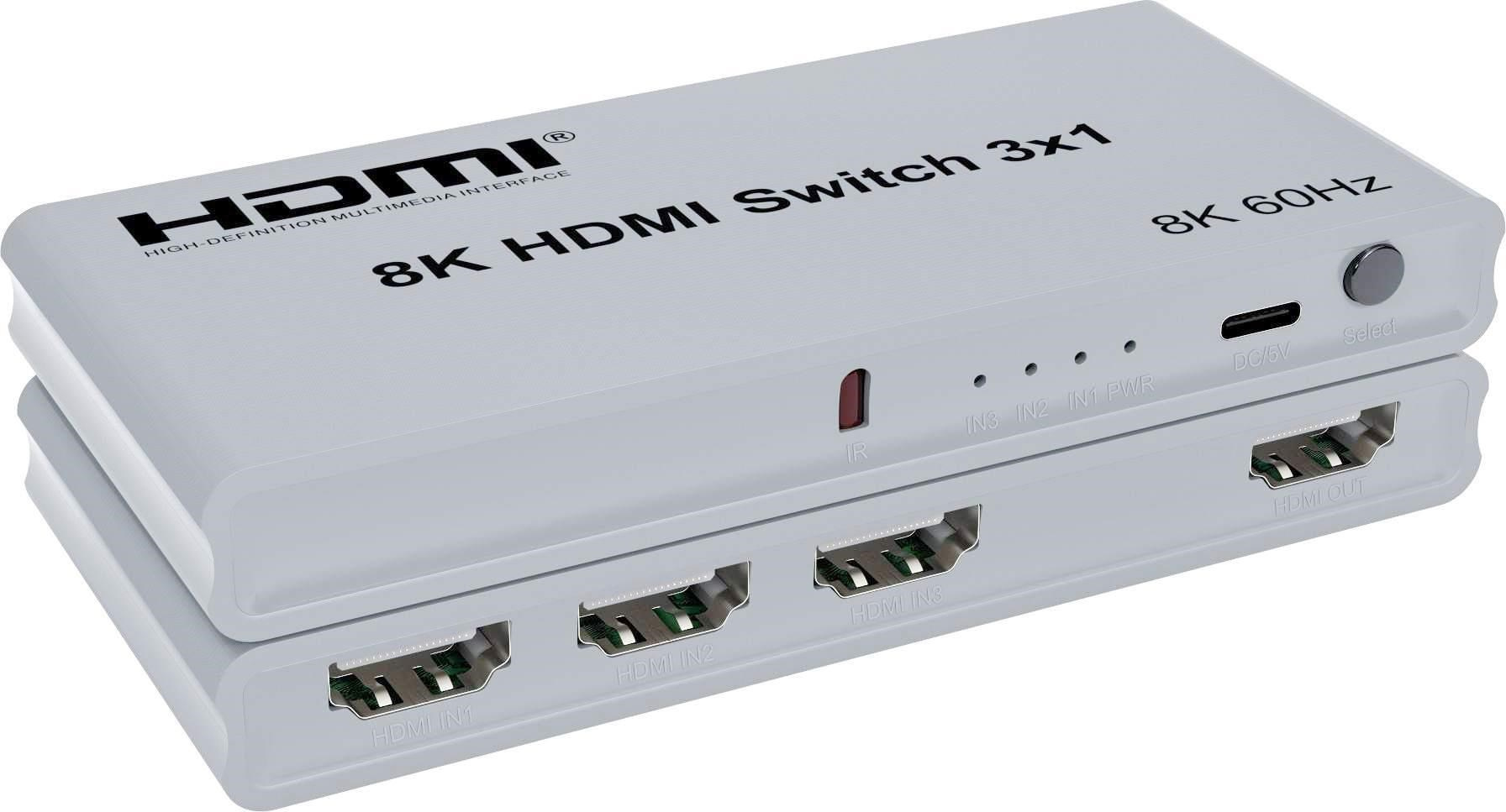 PremiumCord 8K@60Hz, 4K@144Hz HDMI prepínač 3:1 s diaľkovým ovládačom