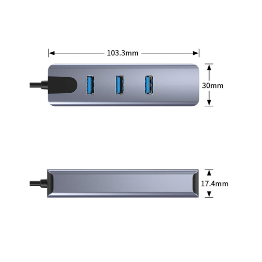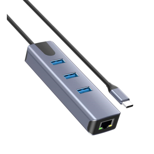 Prevádzač, ktorý umožní pripojiť Váš počítač s portom USB typu C do internetu alebo k lokálnej sieti pomocou kábla s RJ45 (Gigabit) a navyše umožňuje zapojiť tri USB3.2 (5 Gbps) periferie ako USB disk, tlačiareň, klávesnicu a myš