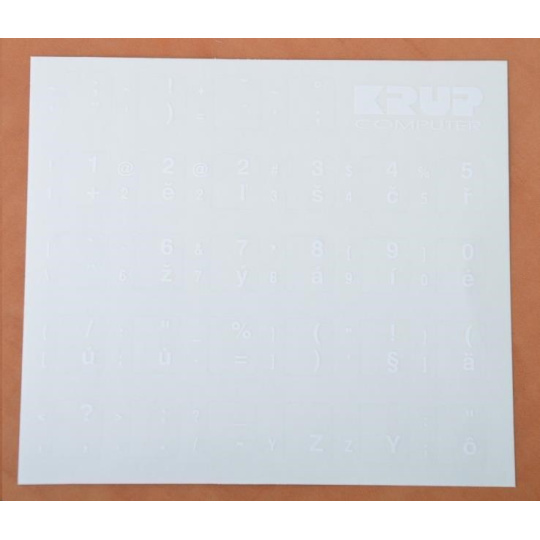 Přelepky na klávesnici CZ/SK - bílá barva (obrázek je ilustrační) - česká abeceda - kompletní přetisky, vhodné i pro notebooky.