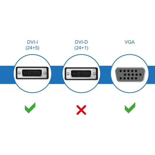 Redukcia umožňujúca pripojiť monitor so štandardným VGA konektorom do DVI-I výstupu (teda DVI výstup obsahujúci aj analógové obrazové signály) na grafickej karte.