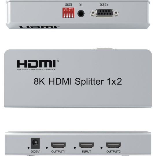PremiumCord HDMI 2.1 splitter 1-2 porty, 8K@60Hz, 4K@120Hz, 1080p, HDR