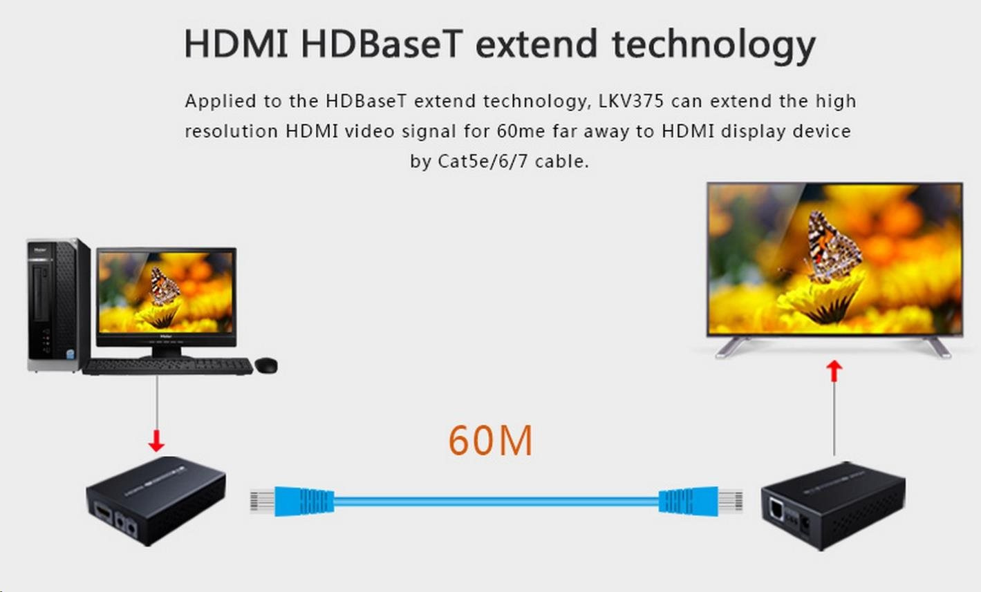 Zariadenie umožňuje prenášať signál HDMI 4K x 2K alebo FULL HD 1080p až na 70 m cez sieťový kábel.