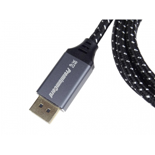 PremiumCord DisplayPort 1.4 pripojovacie káble M/M pre rozlíšenie 8K, kovové krytky a pozlátené konektory, 1,5 m
