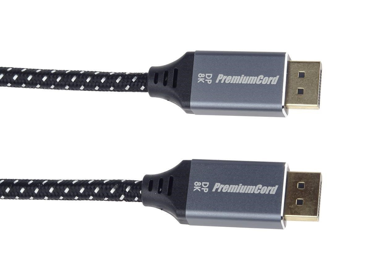 PremiumCord DisplayPort 1.4 pripojovacie káble M/M pre rozlíšenie 8K, kovové krytky a pozlátené konektory, 2 m
