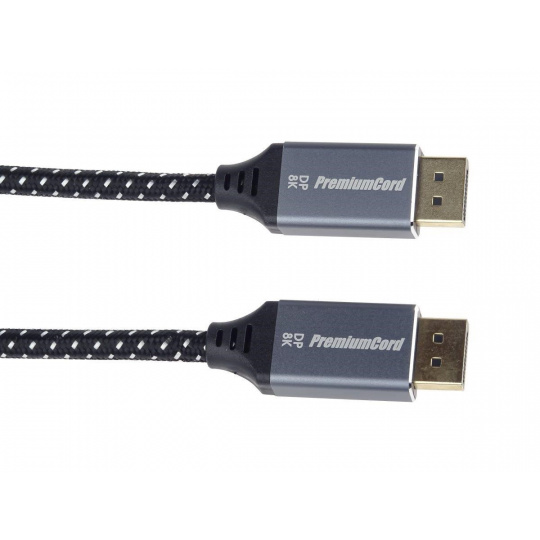 PremiumCord DisplayPort 1.4 pripojovacie káble M/M pre rozlíšenie 8K, kovové krytky a pozlátené konektory, 3 m