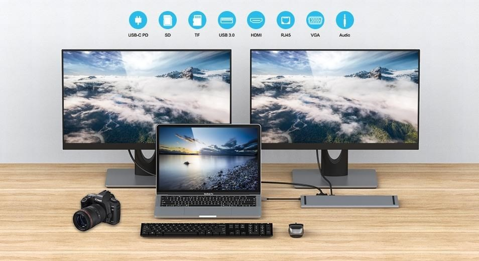 Umožní pridať ďalší monitor a USB perifériu alebo pamäť a súčasne nabíjať cez konektor PD. Umožňuje tiež pracovať na viacerých obrazovkách naraz.