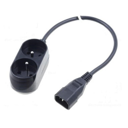 Prodlužovací prívod 2x230V CEE7/5 pre pripojenie do UPS s konektormi IEC 320-C14. Počet výstupných zásuviek: 2 Dĺžka kábla: 30cm Maximálne napätie: 250V Maximálny prúd: 10A.ParametrePridať do porovnania