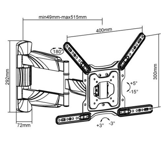Prvotriedny držiak na TV Fiber Mounts Excelent Špičkový nástenný držiak na TV 23-60", otočný až +/-90°, sklopný +5°/-15°, výsuvný 49-515mm, VESA 75x75 až 400x400, nosnosť 35kg Hľadáte kvalitný, pekný a cenovo dostupný držiak na televíziu? Presne tieto vlastnosti má držiak Tv Fiber Mounts Excelent, ktorý Vás prekvapí krásnym dizajnom, ktorý ukrýva naozaj kvalitnú veľmi pevnú a bezpečnú konštrukciu pre spoľahlivé zaveste televízora. Držiak Fiber Mounts Excelent je ideálny na zaveste televízií s uhlopriečkou 23-60", výborne zvláda aj maximálne zaťaženie 35kg bez provešenia ramena aj pri maximálnom vysunutí 515mm. Držiak umožňuje otáčanie televízie na obe strany, jej naklápenie nadol alebo nahor, nastavenie roviny obrazovky. Konštrukcia je osadená dizajnovými krytkami pre skryté vedenie káblov. Držiak má peknú čiernu farbu. V balení nájdete inštalačný materiál. Záruka 5 rokov. Spoľahlivý, bezpečný, ľahko polohovateľný držiak na televízie, ktorý sa vyznačuje skvelou kvalitou a charakteristickým názvom Fiber Mounts Excelent Technické údaje: nosnosť 35kg podporuje VESA štandardy 75x75 až 400x400 ideálny na zaveste televízorov s uhlopriečkou 23-60" výsuvný, nastavenie vzdialenosti od steny 49mm až 515mm naklápanie televízie nadol až o 15° alebo nahor až o 5° otáčanie televízie do strán +/- 90° (podľa veľkosti TV) korekcia roviny obrazovky +/- 3° veľmi pevná a bezpečná konštrukcia spoľahlivé zaveste televízie so zabezpečením proti vysadeniu dizajnové krytky konštrukcie s funkciou skrytého vedenia káblov veľmi pekný celkový vzhľad držiaka ľahká inštalácia, súčasťou balenia je montážny materiál farebné prevedenie čierne záruka 5 rokov Systém pre vedenie káblov na televíznom držiaku Fiber Mounts Excelent Televízny držiak Fiber Mounts Excelent podporuje VESA štandardy: VESA 75x75 VESA 100x100 VESA 200x100 VESA 200x200 VESA 300x200 VESA 300x300 VESA 400x200 VESA 400x300 VESA 400x400 Držiak na televízie Fiber Mounts Excelent je vhodný pre spoľahlivé a bezpečné zaveste VŠETKÝCH typov, značiek a uhlopriečok televízií, ktoré majú hmotnosť maximálne 35kg a ktoré podporujú ktorýkoľvek z vyššie uvedených VESA štandardov. Na veľkosti televízie nezáleží. Držiak Fiber Mounts Excelent umožňuje otáčanie kolmo na stenu pri televízoroch s šírkou maximálne 92cm. Televízory s väčšou šírkou (ne uhlopriečka) otočíte o niečo menej.