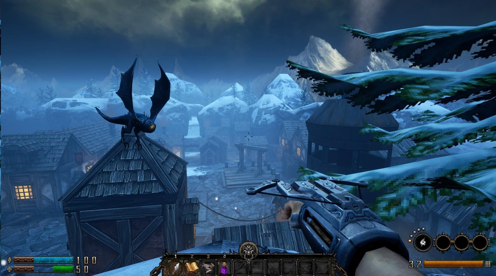 Kombináciou moderných vývojových nástrojov a techník s jednoduchou grafikou 90. rokov GRAVEN oživuje akčnú logickú hru z pohľadu prvej osoby s dizajnom postáv od Chucka Jonesa (Duke Nukem 3D, Half-Life) a hlasovým herectvom Stephana Weyta (Blood, Fire Emblem, Dusk) v temnom, ale výraznom stredovekom fantasy zážitku.
