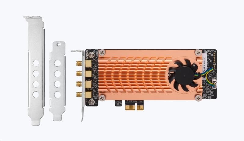| Obsah balenia | 1 x QWA-AC2600 PCIe bezdrôtový adaptér, 4 x odnímateľné antény + magnetický stojan, Plnohodnotné a špeciálne (pre vybrané QNAP NAS) držiaky a Rýchly inštalačný sprievodca |