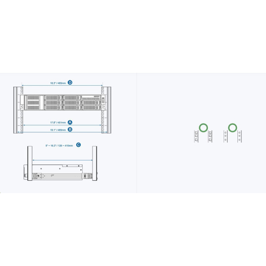 Sady koľajníc QNAP Rail Kits pomáhajú pri inštalácii QNAP NAS do racku. Posuvné koľajnice umožňujú zasunutie QNAP NAS dovnútra a vysunutie von pre jednoduchú údržbu a správu. Modely QNAP NAS určené do racku vyhovujú štandardom rackovej montáže ANSI/EIA-RS-310-D. Pred kúpou serverového racku si prosím skontrolujte, či tento serverový rack zodpovedá príslušným špecifikáciám.
