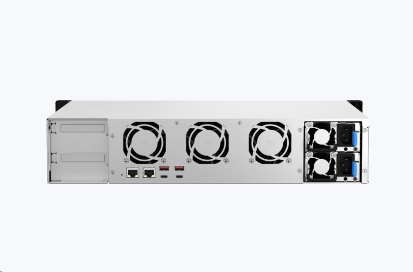 NAS s malou hĺbkou pre montáž do racku s duálnym pripojením 2,5GbE. Štyrjadrický procesor AMD Ryzen™ s podporou 10/25GbE alebo M.2 SSD cache s možnosťou rozšírenia PCIe pre virtuálne aplikácie (Podpora operačných systémov QTS alebo QuTS hero)