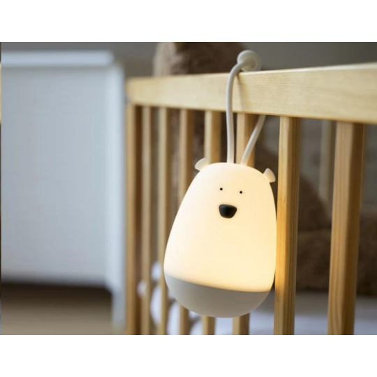 Lampička v podobe roztomilého medvídka, vyrobená z mäkkého, bezpečného, certifikovaného a zdravotne nezávadného silikónu, je ideálna prvá lampička aj pre najmenšie deti, nočné svetielko i ľahko prenosná lampička pre nočné návštevy toalety, na cesty. Detskú lampičku jednoducho pomocou silikónovej spony pripevníte na rám postieľky a rovnako jednoducho ju v prípade potreby zložíte.