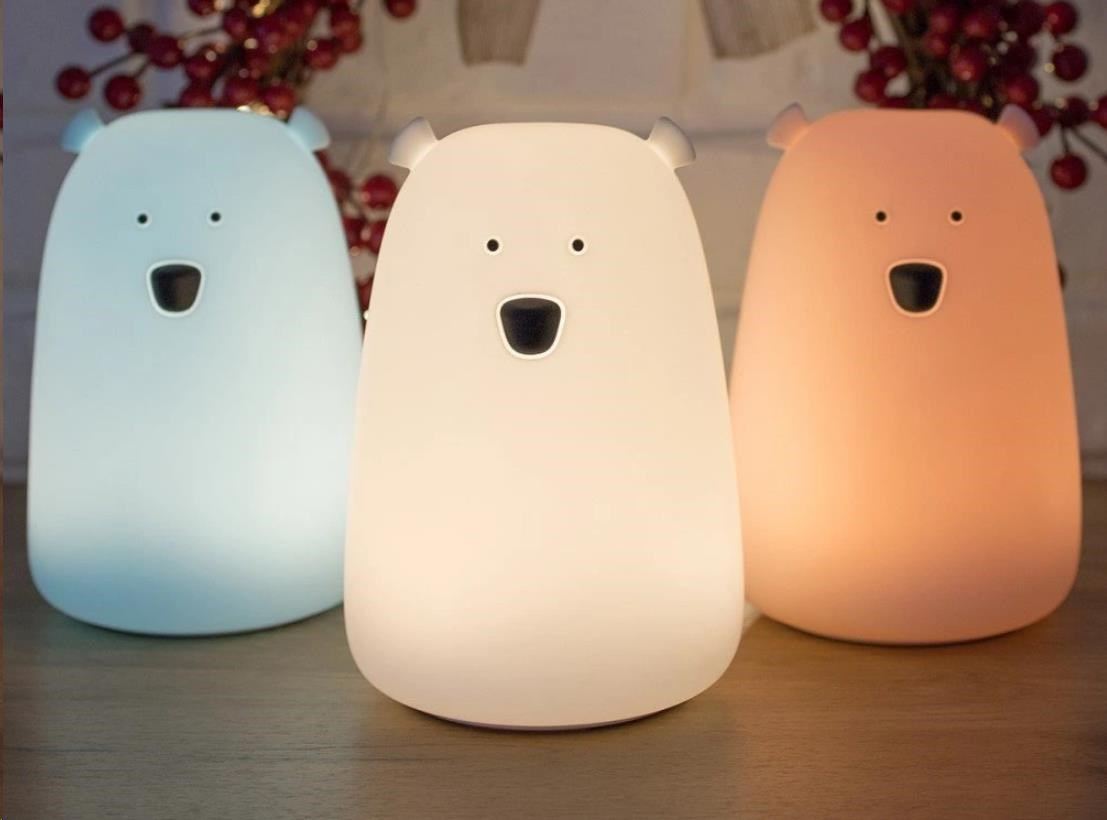 je vyrobená z príjemného a mäkkého silikónu. Vďaka možnosti výberu zo troch farebných prevedení je skvelou voľbou ako do dievčenskej, tak aj chlapčenskej izbičky. Tento roztomilý kamarát bude svojím príjemným svetlom robiť vašim deťom spoločnosť pri večernom zaspávaní, ale pokojne aj chvíľu po ňom. V prípade, že medvedíka zabudnete vypnúť, sám sa po 2 hodinách svietenia automaticky vypne. Deti si svietiaceho medvedíka natoľko obľúbia, že ho budú chcieť brať so sebou aj na dovolenku či víkendový pobyt. Lampička je určená na svietenie, nie je hračkou.