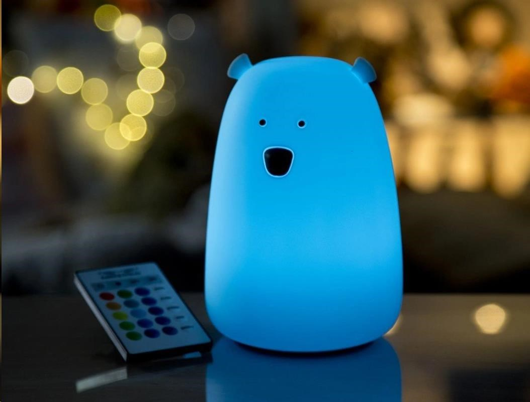 je vyrobená z príjemného a mäkkého silikónu. Vďaka možnému výberu zo štyroch farebných prevedení je skvelou voľbou ako do dievčenského, tak aj chlapčenského detského pokoja. Tento roztomilý kamarát bude svojím príjemným svetlom robiť vašim deťom spoločnosť pri večernom zaspávaní, ale pokojne aj chvíľu po ňom. V prípade, že medvedíka zabudnete vypnúť, sám sa po 2 hodinách svietenia automaticky vypne. Deti si svietiaceho medvedíka natoľko obľúbia, že ho budú chcieť brať so sebou aj na dovolenku či víkendový pobyt. Lampička je určená na svietenie, nie je hračkou.