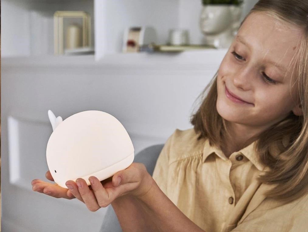 Detská lampička v podobe morského veľrýba je ideálna prvá lampička pre vašu dievčatko aj chlapca. Roztomilú a mäkkú veľrybu si deti okamžite zamilujú a určite sa stane súčasťou ich každodenného zaspávacieho ceremoniálu. Ovládanie lampičky je jednoduché a zvládnu ho aj deti samy. Poklepaním alebo pomocou diaľkového ovládania lampičku vypnú, zapnú, zmenia farbu alebo intenzitu svetla.