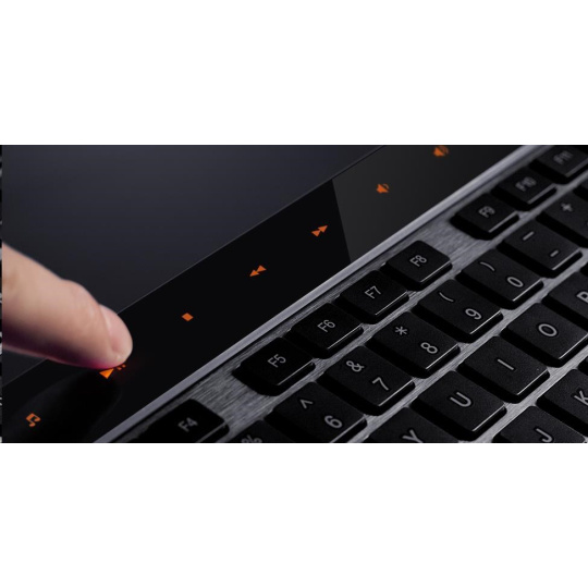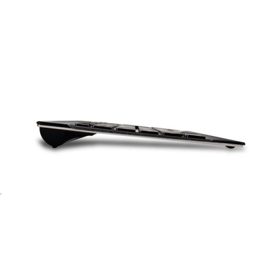 Rapoo E9270P Bezdrôtová klávesnica s dotykovou multimediálnou plochou   Výnimočný ocenením IF Design Award  Inteligentné multimediálne dotykové tlačidlá  Multimediálne klávesy s hmatovou spätou vibráciou  Ultra-tenký dizajn s 4,0 mm hrúbkou  Elegantná konštrukcia so základňou z nerezovej ocele  Spoľahlivé bezdrôtové pripojenie 5GHz    Spoľahlivé bezdrôtové pripojenie 5GHz  Spoľahlivý bezdrôtový prenos 5GHz ďaleko od rušenia bezdrôtového prenosu 2,4GHz, Bluetooth rozhrania a zariadení WIFI.   Inteligentné mediálne tlačidlá  Podsvietenie sa rozsvieti, keď sa vaše prsty priblížia k dotykovej ploche; keď sa vaše prsty vzdialia, podsvietenie zhasne; takto máte všetko pod kontrolou aj v tme.   Čokoládové tlačidlá s veľmi tenkým profilom  Najtenšia 4mm štruktúra z kovovej pružiny a doska z nerezovej ocele prinášajú pohodlnú spätnú väzbu.   Prijímač NANO connect-and-forget  Taký malý a nenápadný, môžete ho pripojiť k USB portu, zabudnúť na neho a zároveň môžete zabudnúť na stratu pripojenia.   Automatické vypnutie  Ak klávesnica nezaznamená niekoľko minút žiadny vstup, prepne sa do režimu standby. Vďaka tejto funkcii bude klávesnica vždy pripravená a ušetrí batérie.   Napájanie  2x AA alkalické batérie   Systémové požiadavky  Windows® XP/Vista/7  Windows® 8, USB port    Rapoo E9270p 5G Wireless 2 Block Metal Keyboard Black