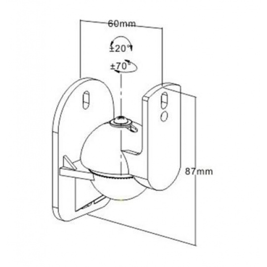 Držiaky na reproduktory, 2ks - vzdialenosť od steny 6cm, výška držiaka 7cm, reproduktor je možné horizontálne otáčať o 140° a nakloniť +/-20°, maximálne zaťaženie 3,5 kg, farba čierna.