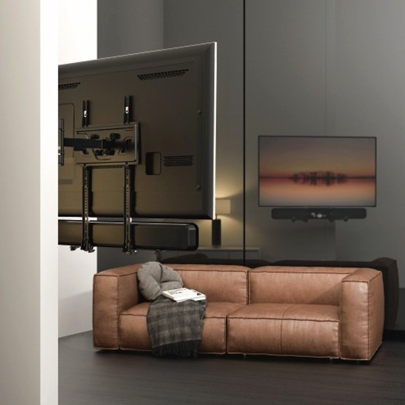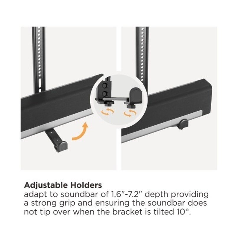 Držiaky na reproduktor pod alebo nad TV - predlžujú jeho držiak, 2ks - výsuvné 4-18,2cm, rozmery zvukového zariadenia môžu byť 40x182mm s šírkou 508-1143mm, maximálne zaťaženie 15 kg, kombinácia ocele a plastu, farba čierna.