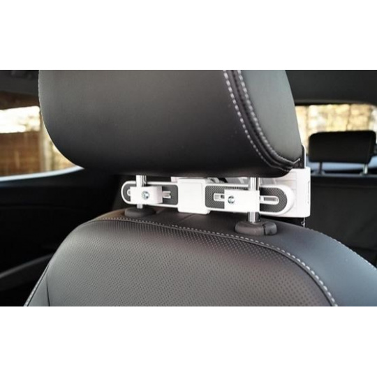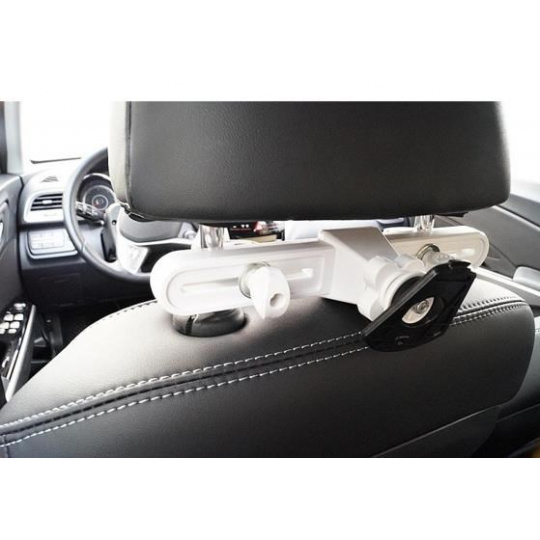 Držiak na 7-11" tablety v horizontálnej a vertikálnej polohe v aute pod opierkou hlavy. Pre cestujúcich na zadných sedadlách. Upevnenie z dvoch strán, otočenie tabletu o 360°, nastaviteľná montážna šírka 45-225 mm, plast, biela...
