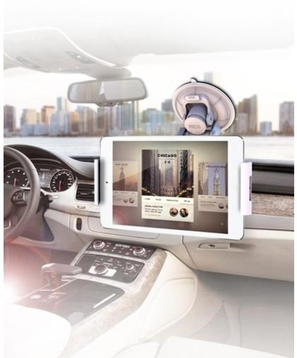 Držiak na čelné sklo pre 7-11" tablety v horizontálnej a vertikálnej polohe. Sklenený prísavný adaptér s guľovou hlavou na voľné nastavenie, otočný o 360°, obojstranné upevnenie, plast, biely...