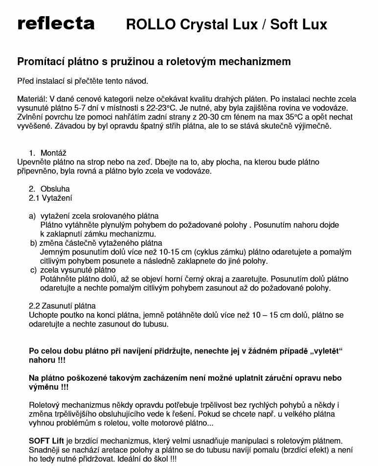 Stojanové skládací plátno Tripod CrystalLine 200x200cm, viditeľná plocha 196x196cm, 1:1, 109"/277cm , čierny kruhový kovový tubus 7x204cm/12kg, výška 243-288cm, materiál BetaLux - biela 0,35 tkanina 300g/m2 s 2cm čiernym okrajom a zadnou stranou, Gain=1,0, pozorovací uhol 120°. Lux - biely matný povrch pre maximálne verný a kontrastný obraz pri aspoň čiastočnom zatmení. PVC materiál s textilným základom vytvára rovný povrch bez vlnkovania, ale na okrajoch môže dochádzať k prohnutiu - postupne mizne. Pre časté prenášanie odporúčame použiť vhodnú veľkosť transportného puzdra Reflecta.