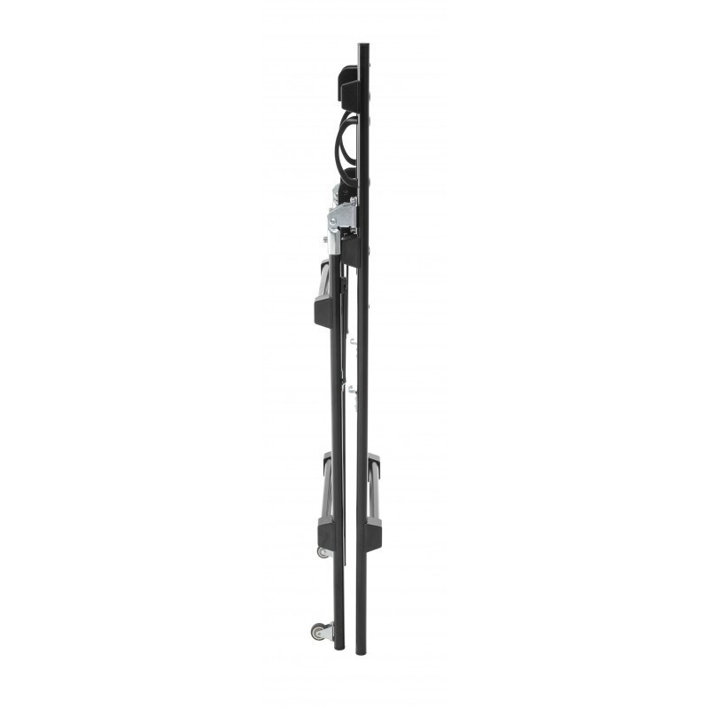 Prenosný stolík na veľké TV s uhlopriečkou 32"- 55" (81-140cm) a hmotnosťou maximálne 50kg. Výklopná konštrukcia s aretáciou polohy na kolieskach, pevný držiak na vertikálne aj horizontálne uchytenie, po sklopení ideálny na prepravu, rozmery 44x46,5x103cm, materiál oceľ, farba čierna. Uchytenie VESA: 75x75, 100x100, 200x100, 200x200, 300x200, 300x300, 400x200, 400x400.