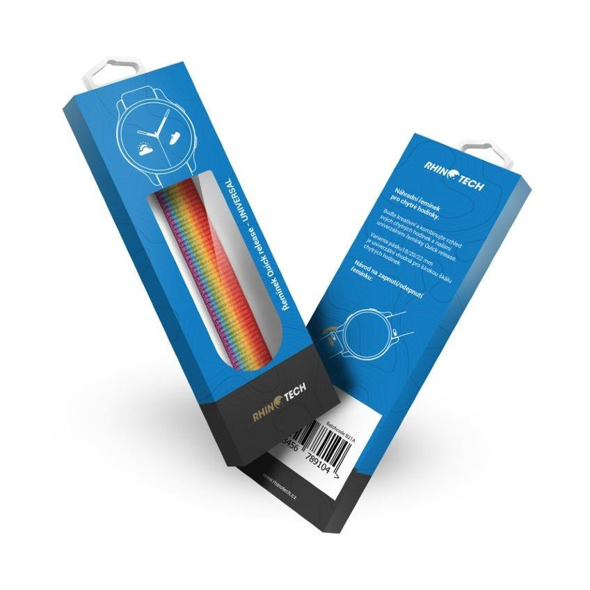 RhinoTech univerzální nylonový řemínek Quick Release 22mm duhový
